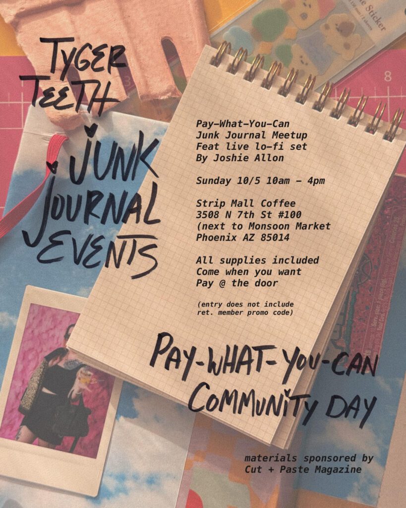 Presented by @tygerteeth (no ticket needed for this 10/5 PWYC day!) Come scrap with a community of fellow crafters, gather new journal materials & yap the hours away. Bring your…